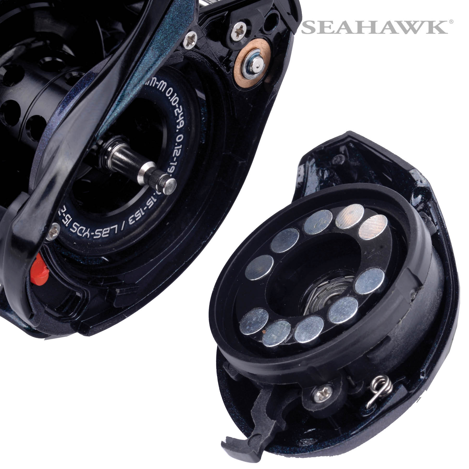 Experience stellar performance with the Seahawk Galaxy 103HSL – enhanced with V-Cast technology for pinpoint accuracy and further casting distance, a smooth 5 shielded ball bearing system, an audible drag clicker and a magnetic braking system that provides precise control.